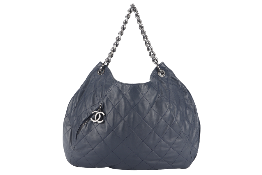 CHANEL PLEATS HOBO BAG (1673xxxx) LARGE BLUE QUILTED CALFSKIN SILVER HARDWARE NO DUST COVER