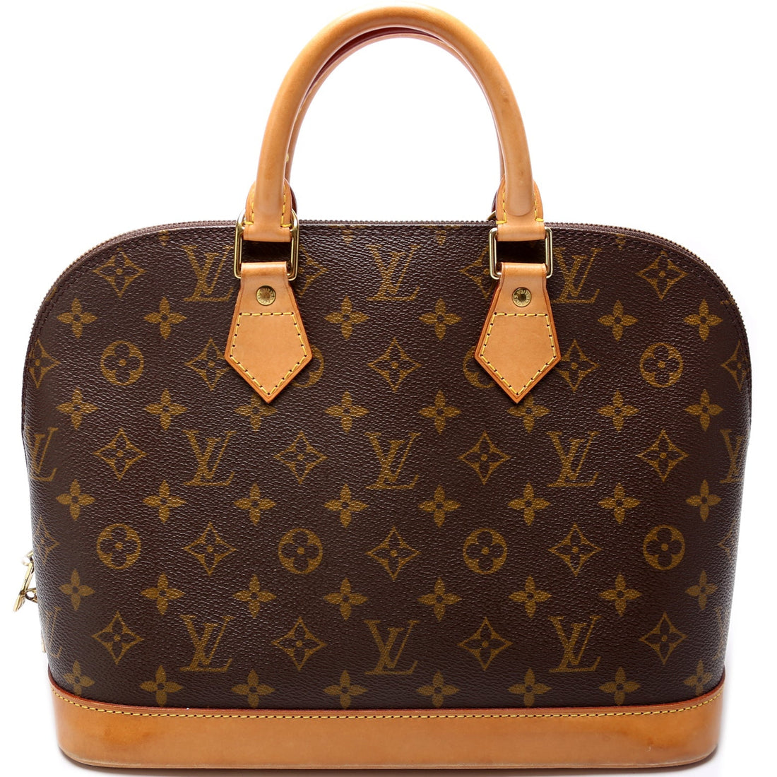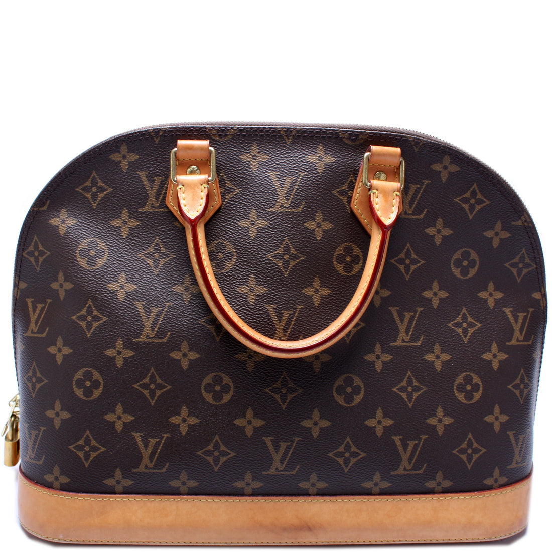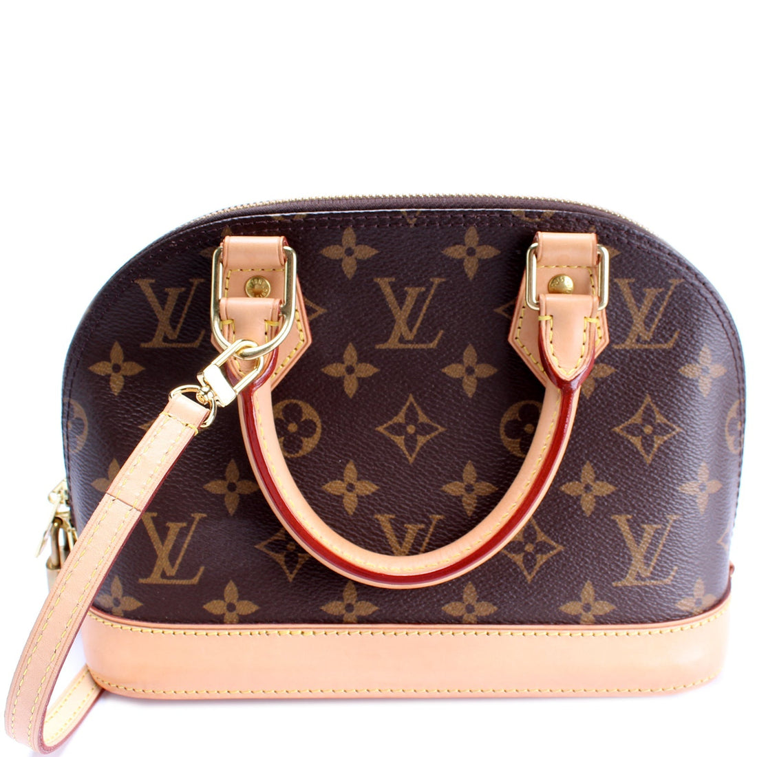 This Louis Vuitton Alma BB is d 100% . The exterior is in the classic Monogram coated canvas....