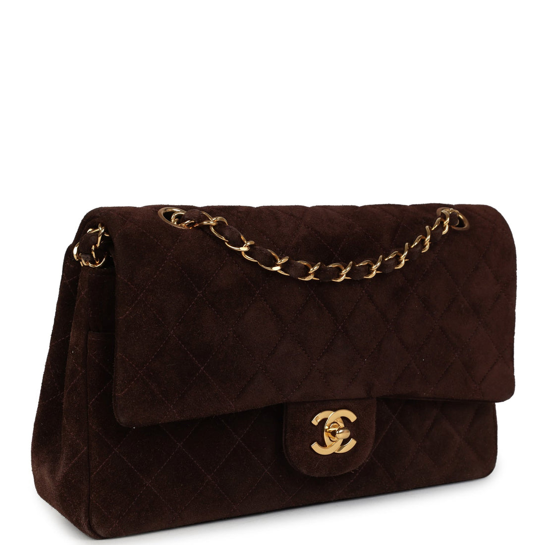 Vintage Chanel Medium Classic Double Flap Bag Brown Suede Gold Hardware