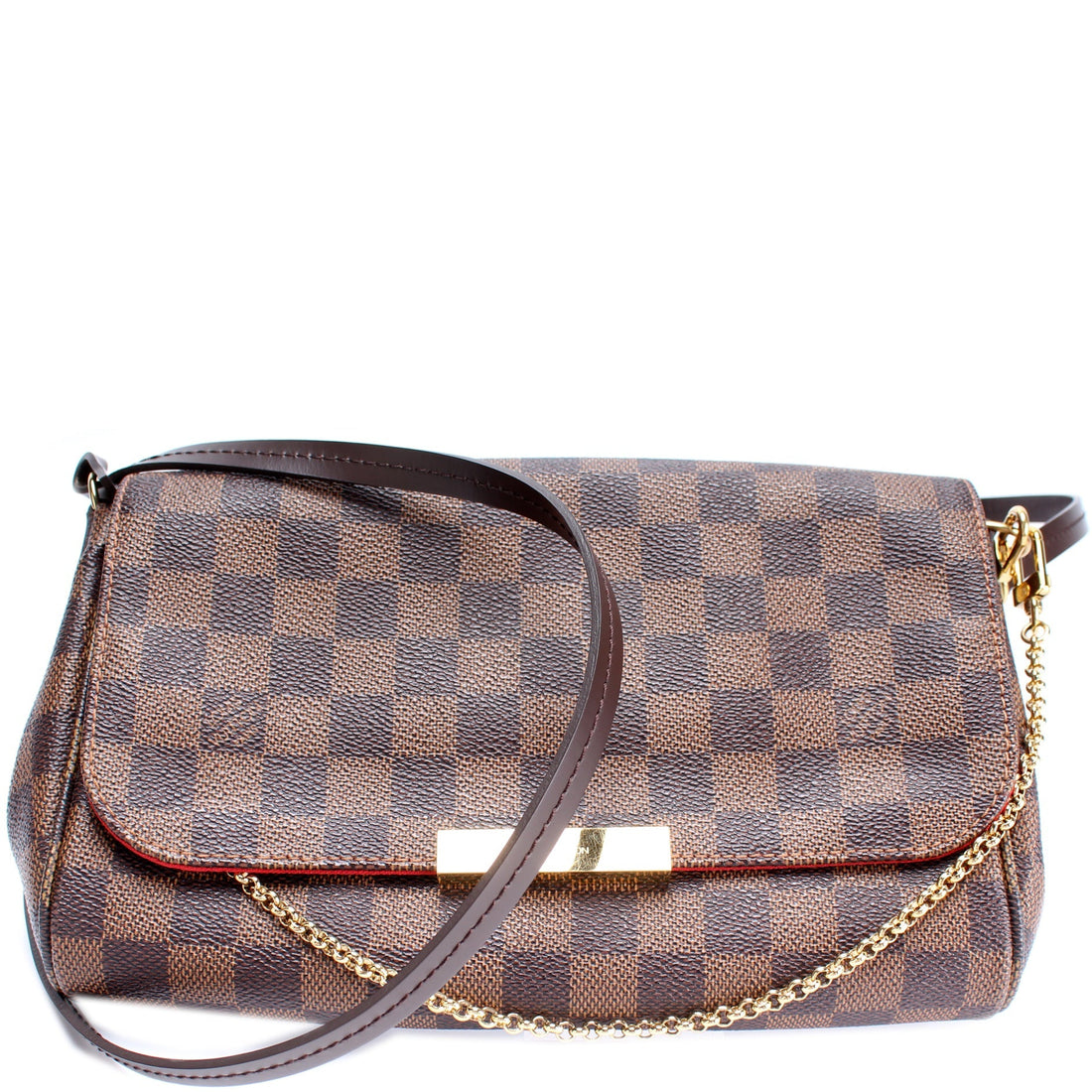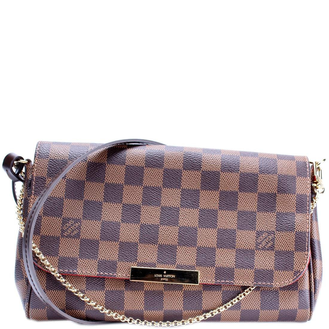 This Louis Vuitton Favorite MMis eye catching bag. The exterior is in the classic Damier Ebene...