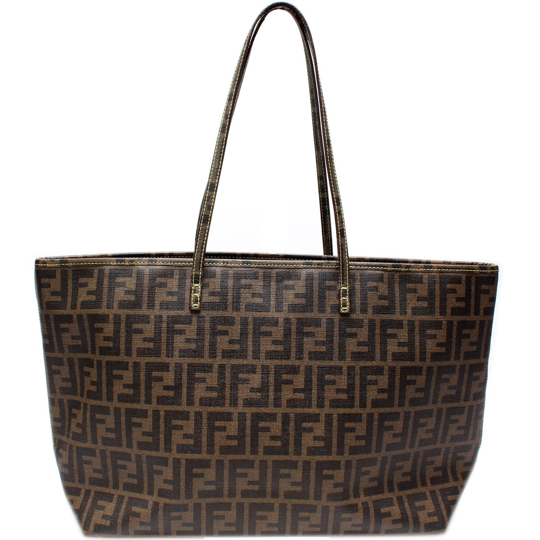 This Fendi Coated Zucca Zip Tote is d 100% . The exterior is in the classic Fendi Zucca...