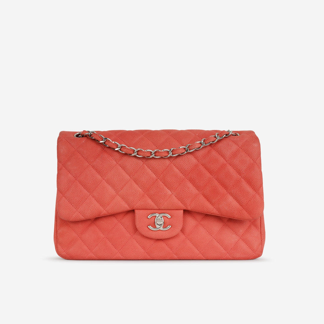 Chanel Classic East West Single Flap Coral Caviar Light Gold Hardware