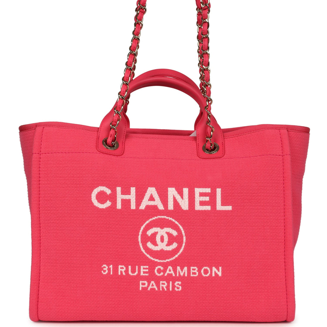 Chanel Medium Deauville Shopping Tote Hot Pink Canvas Light Gold Hardware