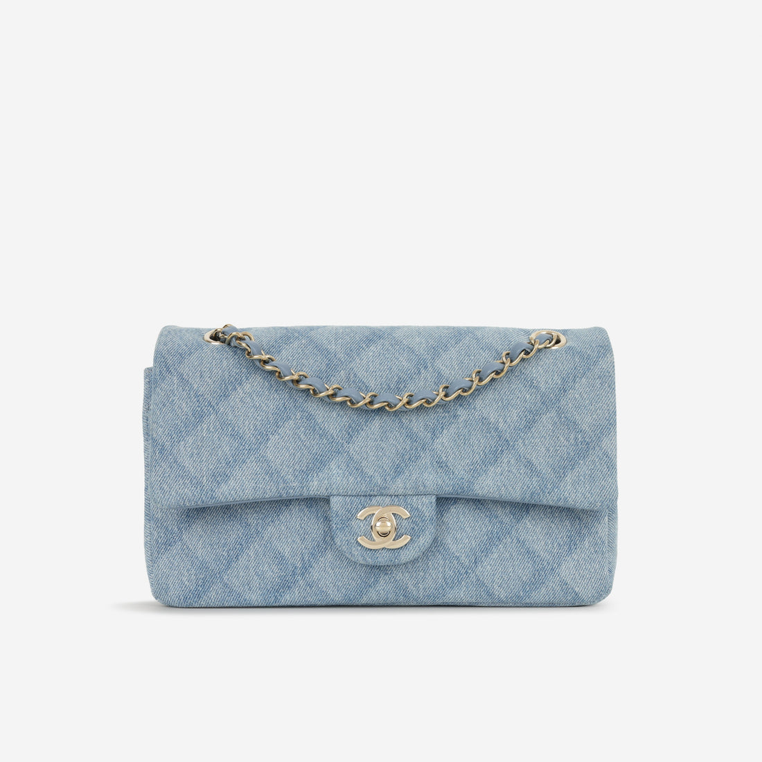 Chanel Medium Classic Flap Denim Tromp L'oeil Champagne Gold Hardware