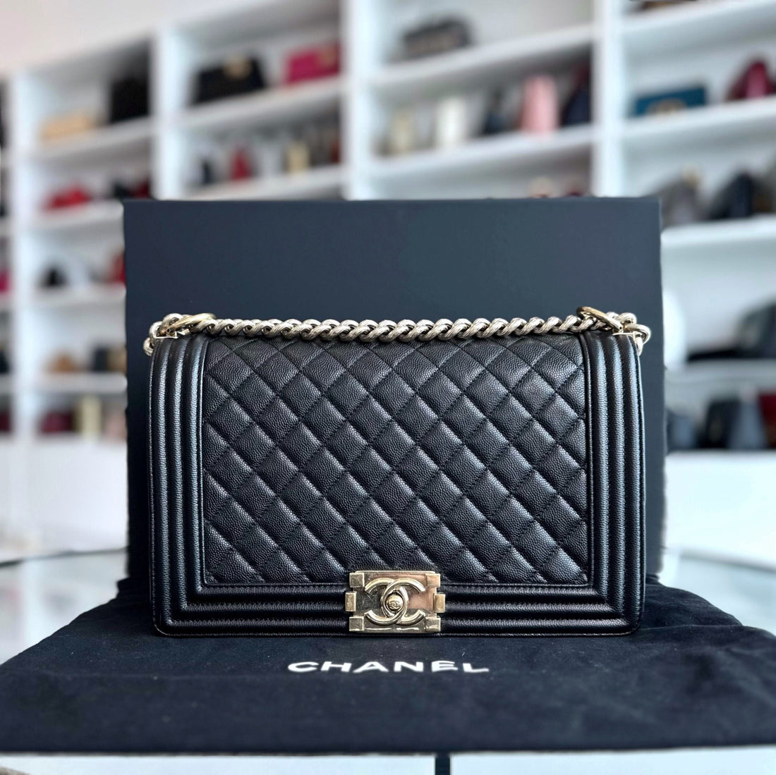 Boy Caviar Old Medium 25CM Quilted Black Leboy GHW No 23