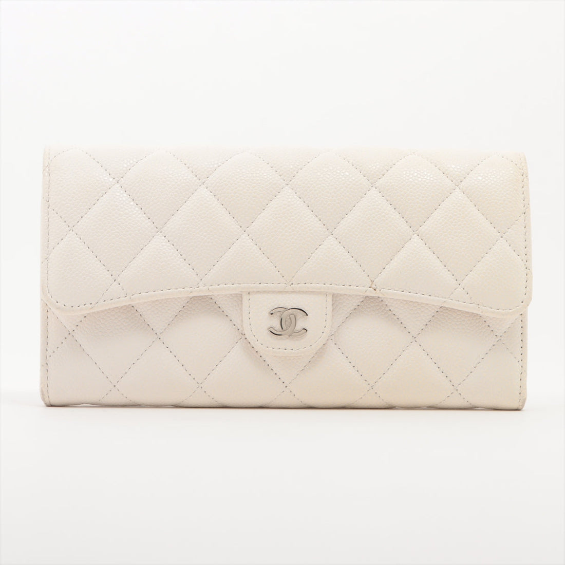 Chanel Matrasse Caviar S Wallet White Silver Gold