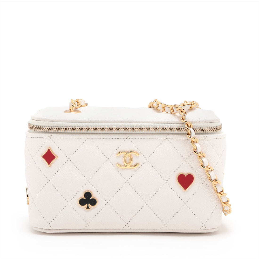 Chanel Matrasse Caviar S Chain Shoulder Bag Vanity White G