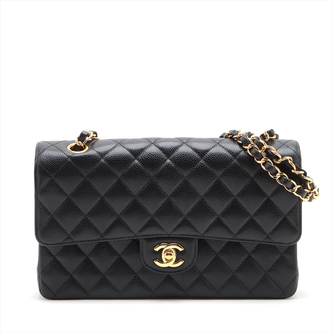 Chanel Matrasse 25 Caviar S Double Flap Double Chain Bag Black G 15th
