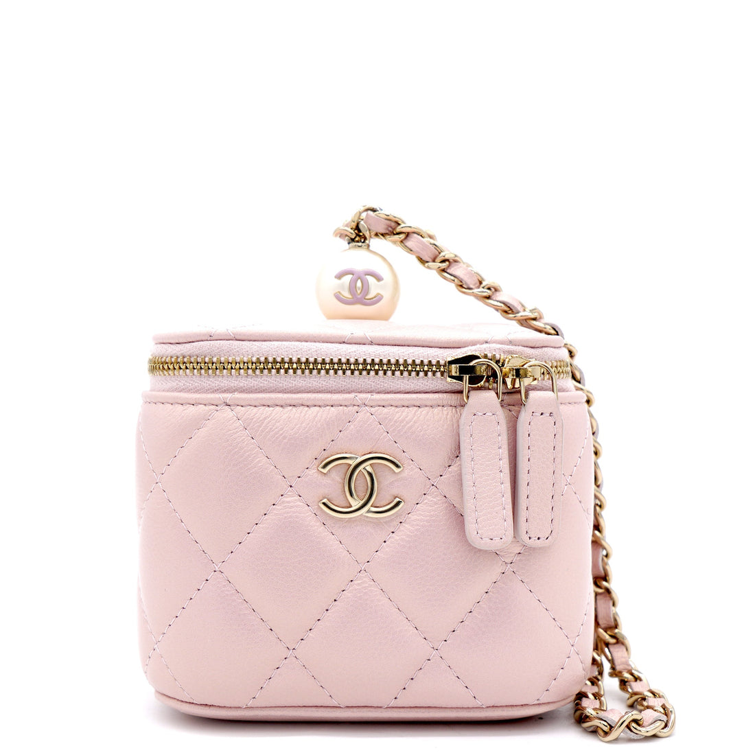 Chanel Mini Caviar GHW Vanity Case with Pearl Details Light Pink