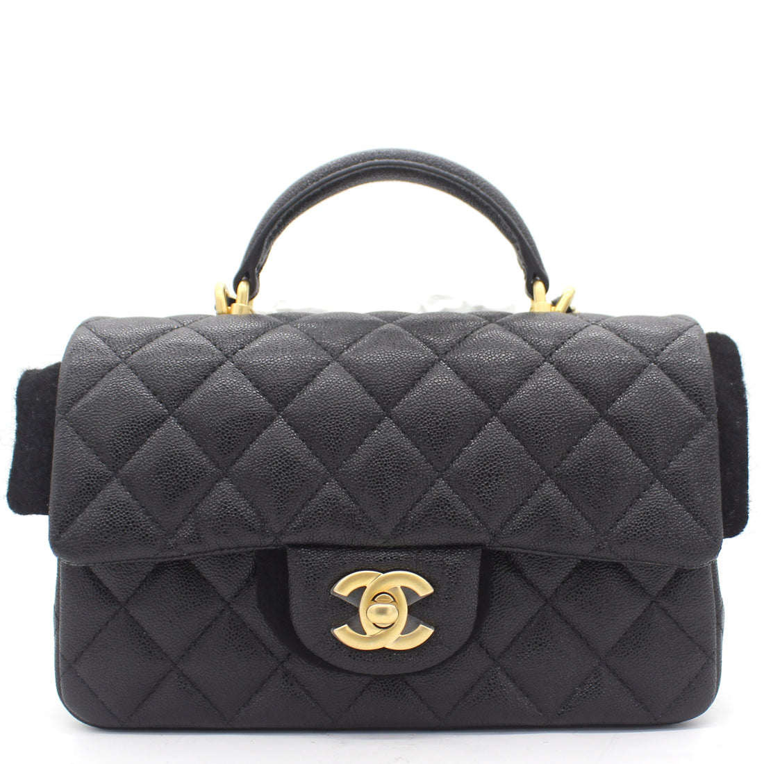 CHANEL Mini Coco Handle Caviar Black LGHW (Microchip)