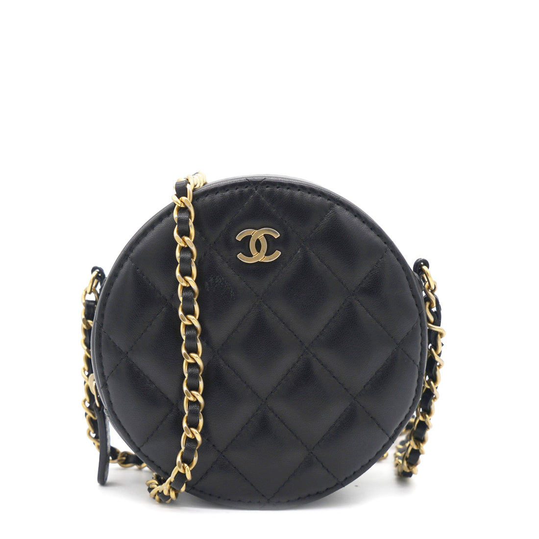 Chanel Mini Round Purse Vanity Lambskin Leather Black
