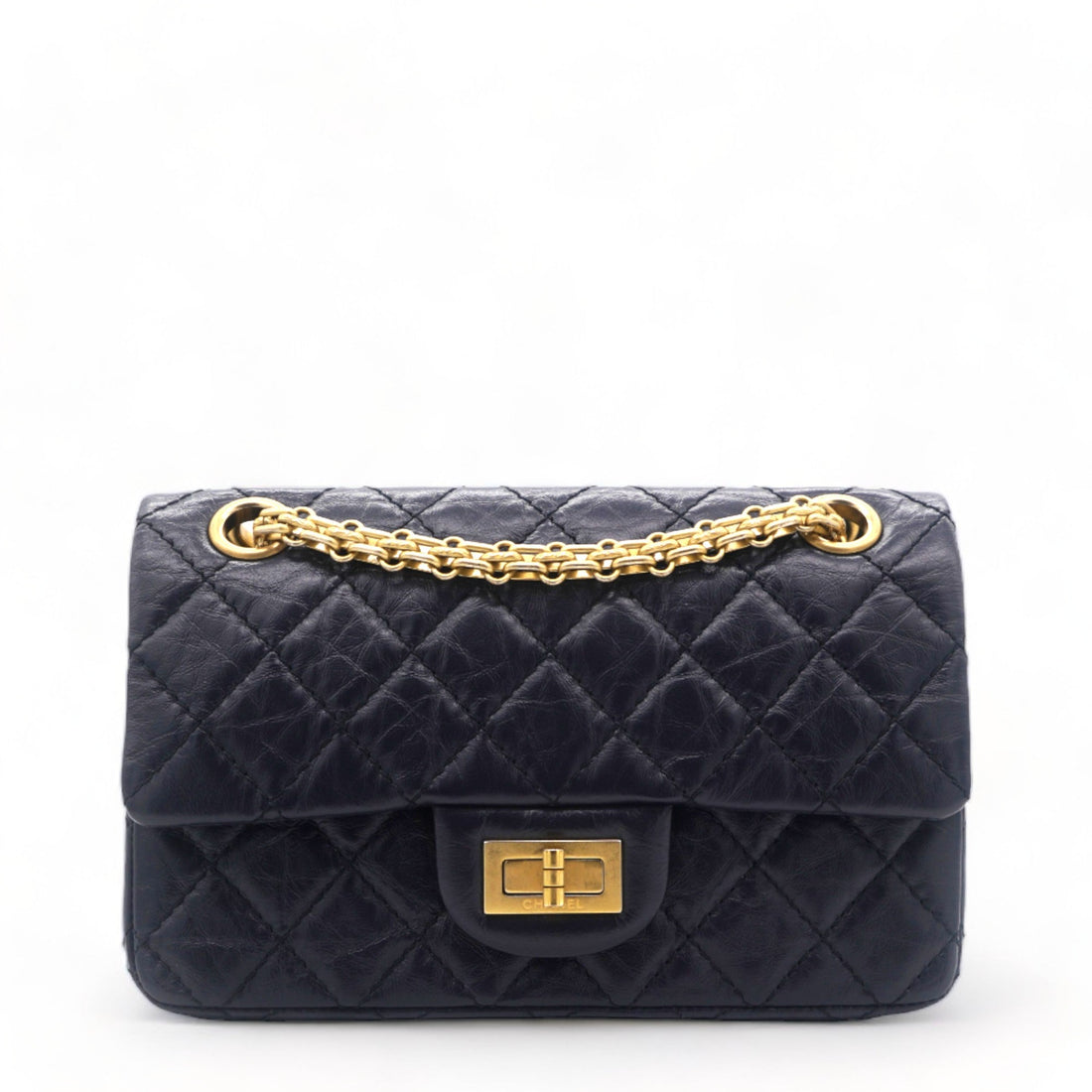 Chanel Navy Quilted Crinkled Leather Mini Reissue 2.55 Flap Bag
