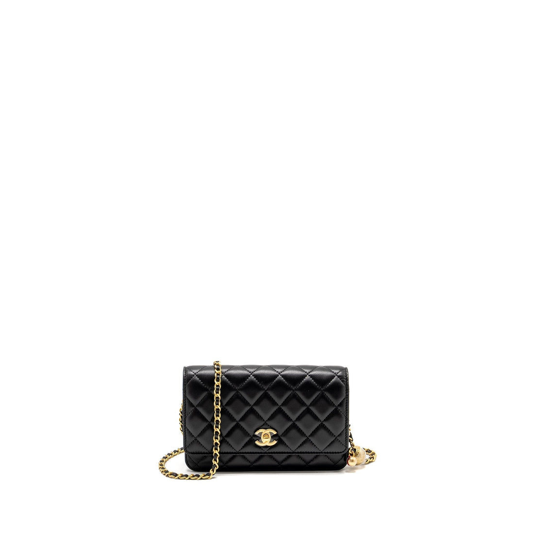 CHANEL Pearl Crush Wallet on Chain Lambskin Black GHW (Microchip)