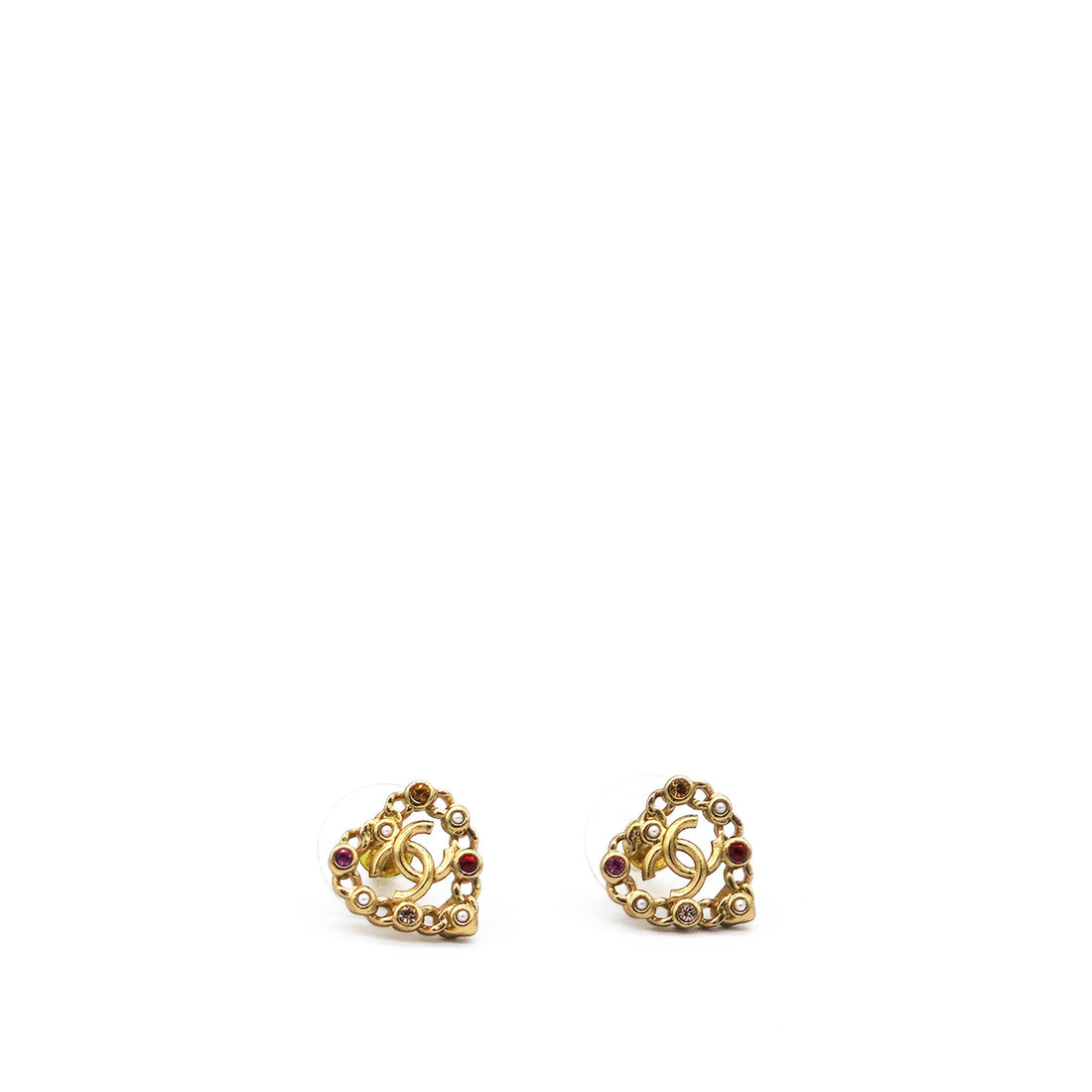 Chanel Pearl Crystal CC Heart Earrings Gold Multicolor