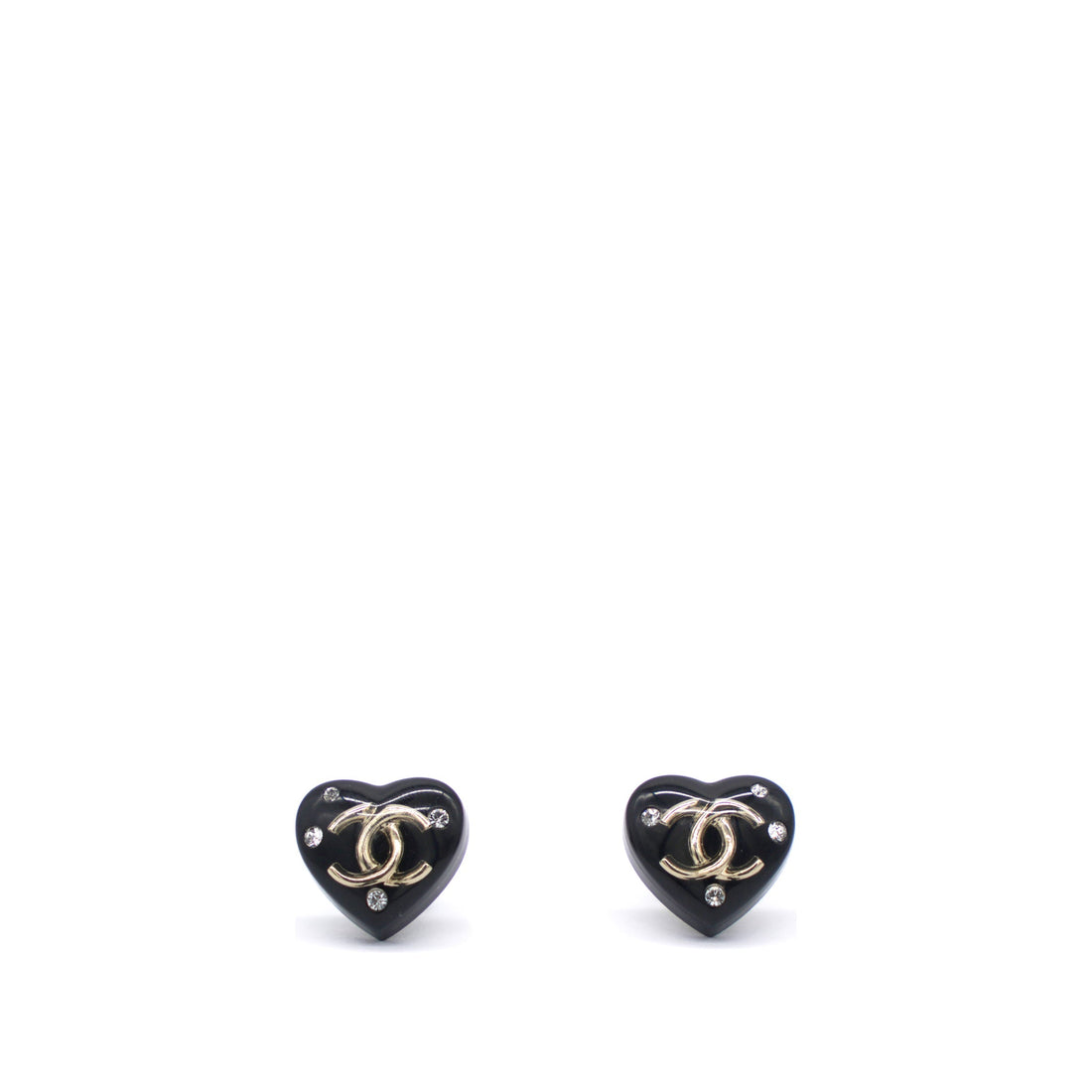 Chanel Resin Crystal CC Heart Earrings Black Gold