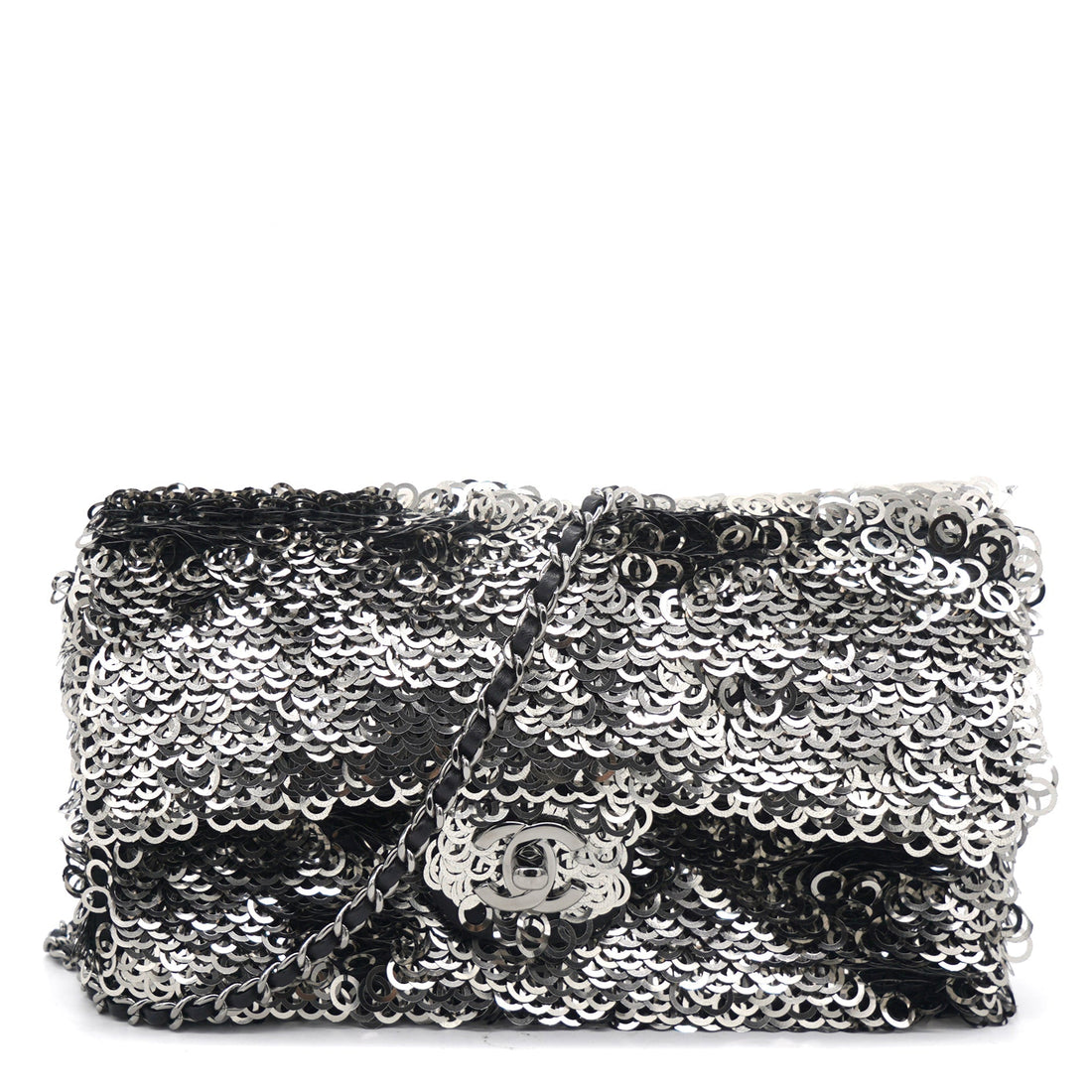 This is an CHANEL Sequin Small Single Flap in Black and White. This chic...