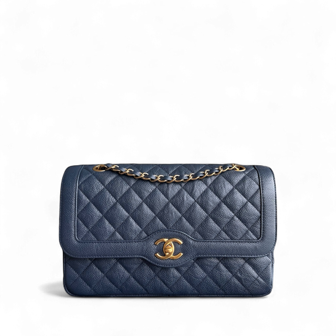 Chanel Seasonal Timeless CC Flap - Caviar 24CM Dark Blue Silver Hardware Series 15