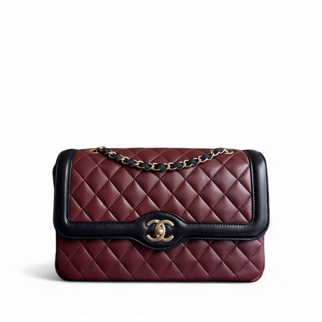 Chanel Seasonal Two-tone Flap Medium - Quilted Lambskin Dark Burgundy Red Black Gold Hardware Series 21