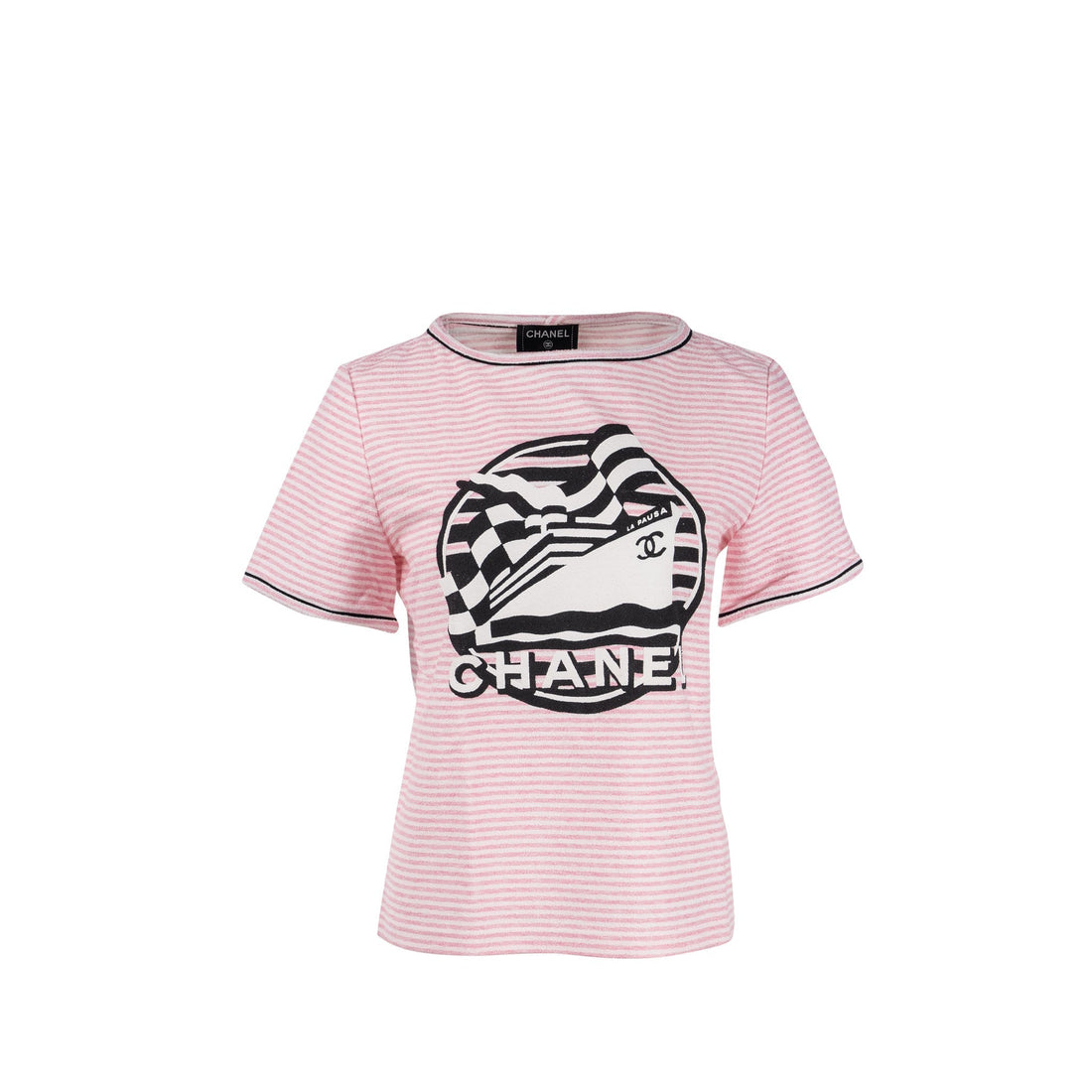 Chanel Size 36 19C LA PAUSA Striped Terrycl T-shirt Cotton/Polyamide/Elastane Pink/White
