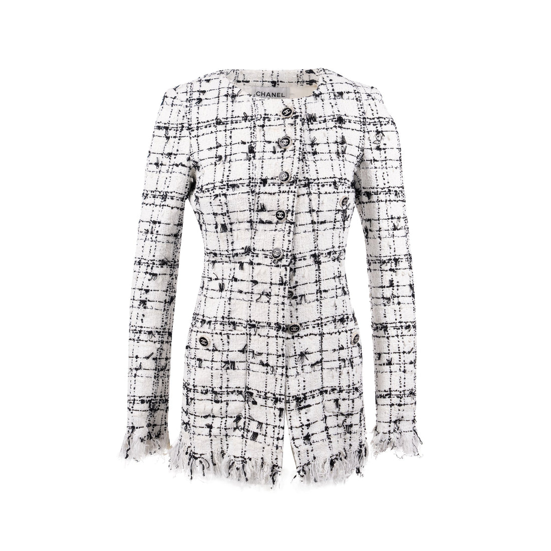 Chanel Size 34 Tassel Tweed Jacket Cotton White/Black