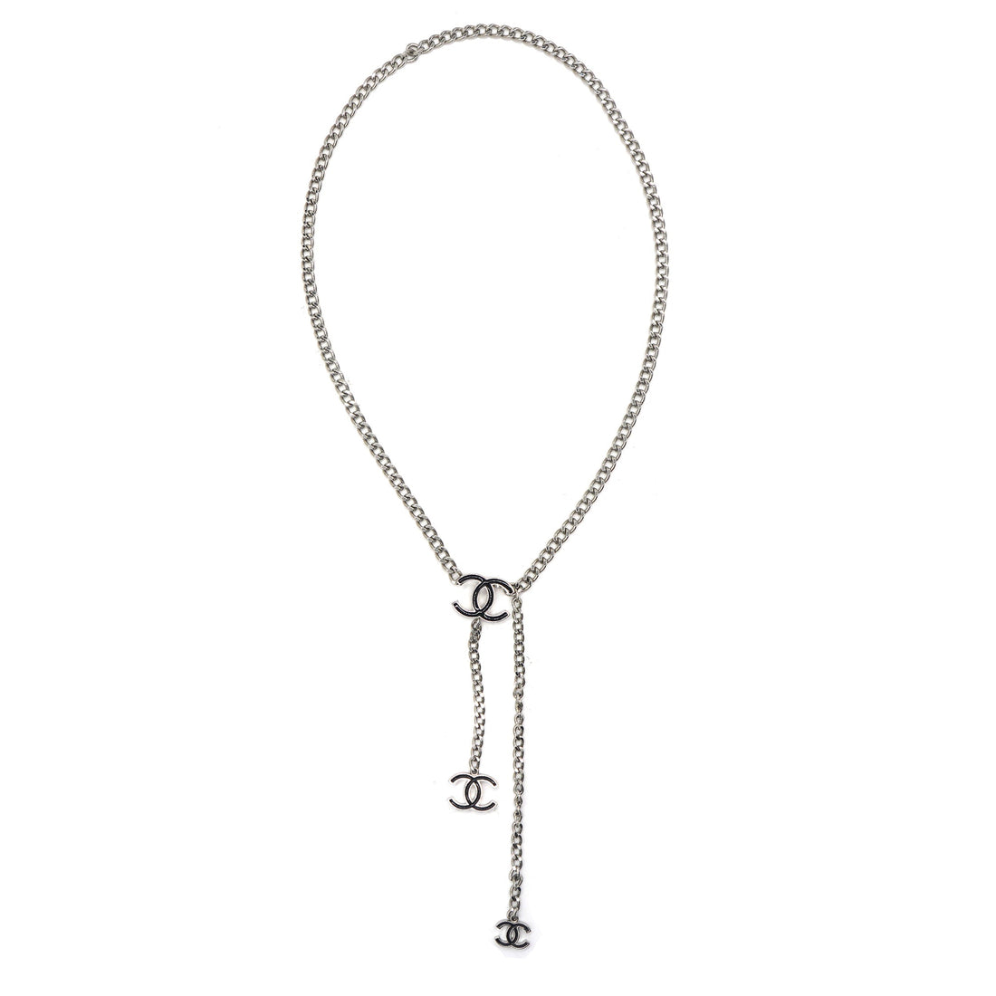Chanel Silver Tone Enamel CC Charm Chain Belt