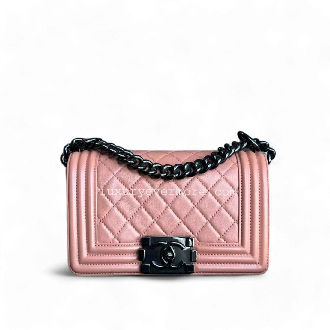 Calfskin Boy Small Quilted Coral Blush Black Hardware Series 25