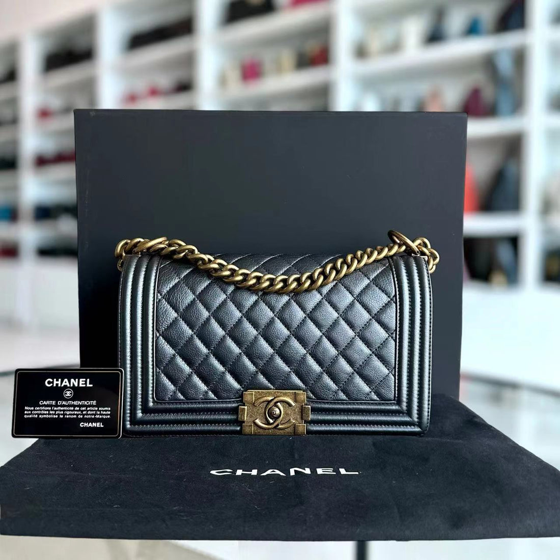 Calfskin Boy New Medium 28CM Quilted Grained Calfskin Caviar Black Ruthenium Silver Hardware Series 23