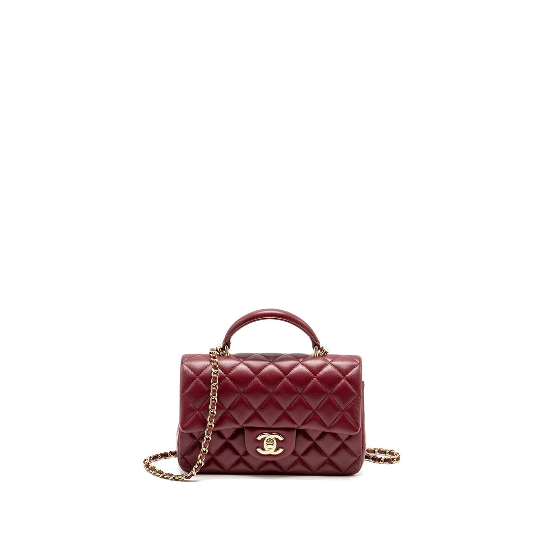 Chanel Top Handle Mini Rectangular Flap Bag Lambskin Burgundy LGHW (Microchip)