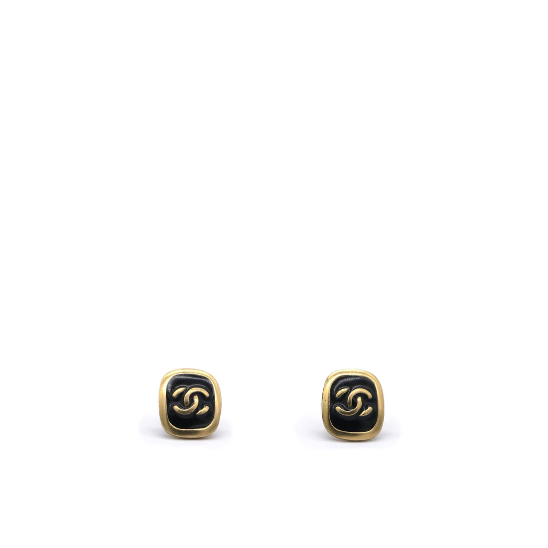 Chanel Vintage CC Gold Logo Black Enamel Square Earrings