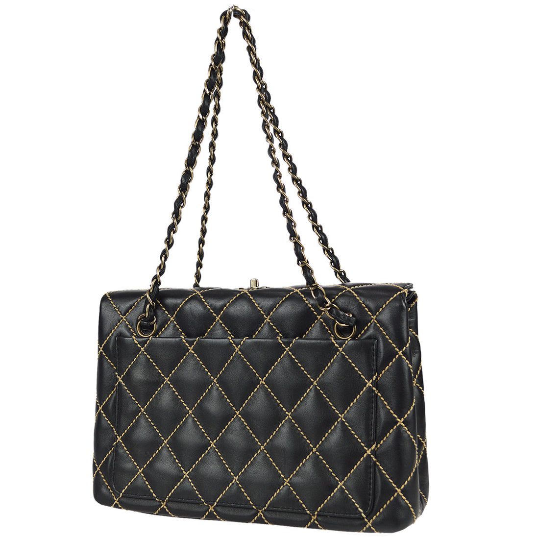 Chanel Wild Stitch Chain Handbag Black Calfskin