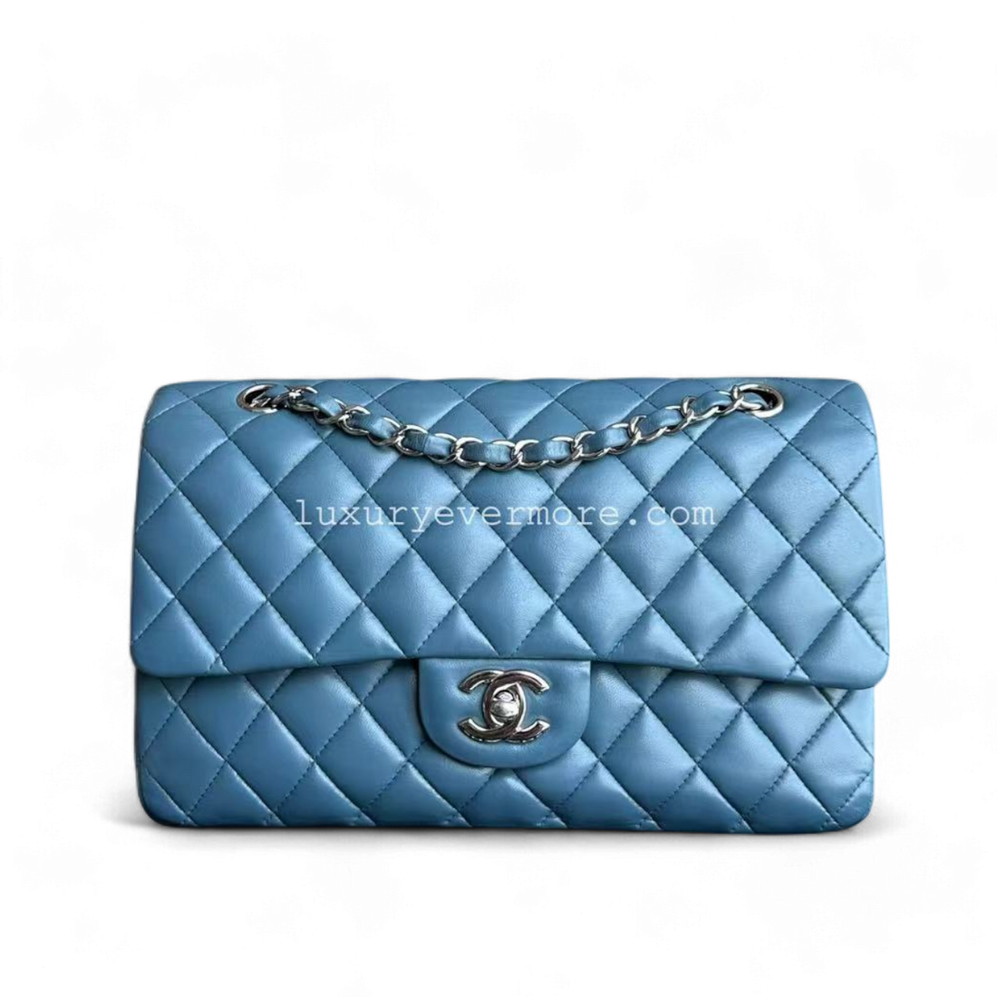 Classic Flap Medium 25CM Quilted Lambskin Blue Silver Hardware Series 19