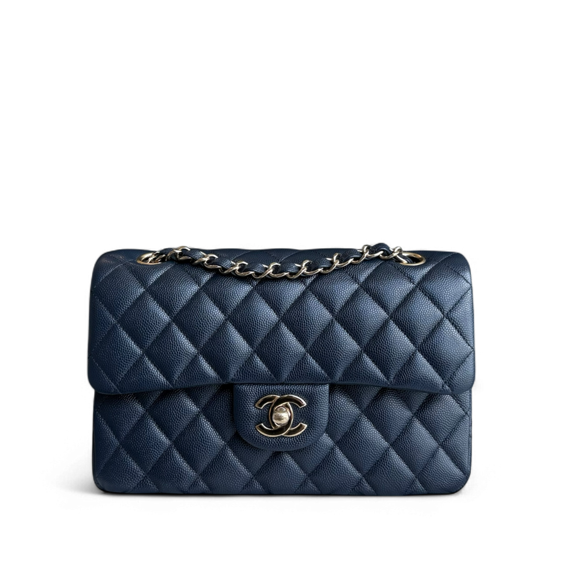 Full Set Chanel Classic Flap Small - Caviar 23CM Quilted Dark Midnight Blue Gold Hardware Series 30
