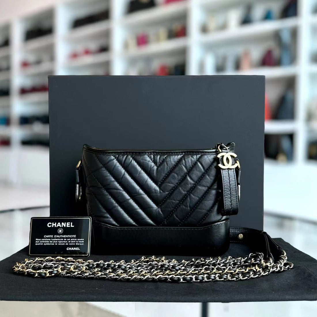 Gabrielle Small Hobo Chevron Calfskin Black GHW No 26