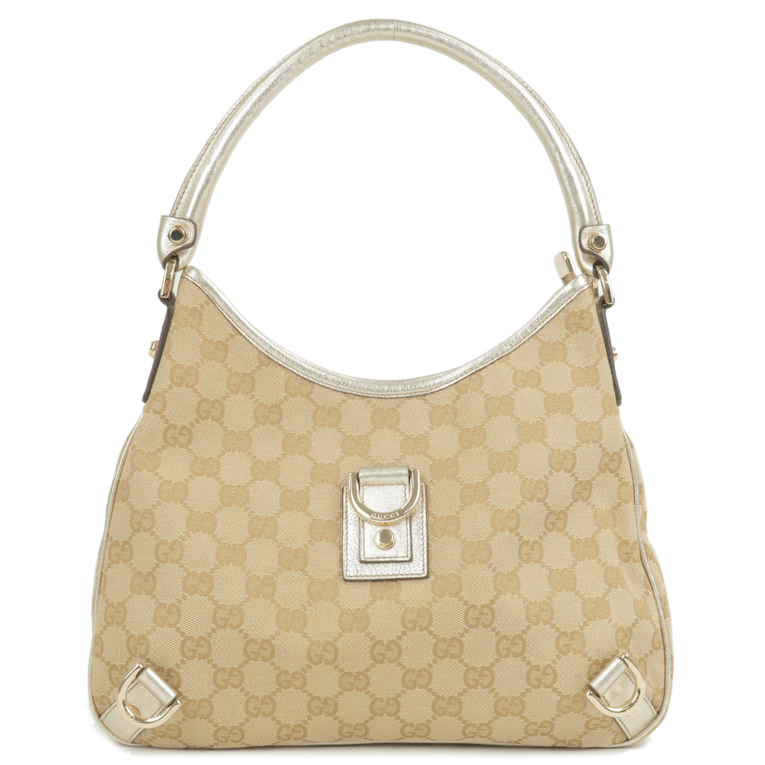 GUCCI Abbey GG Canvas Leather Shoulder Bag Beige 130738
