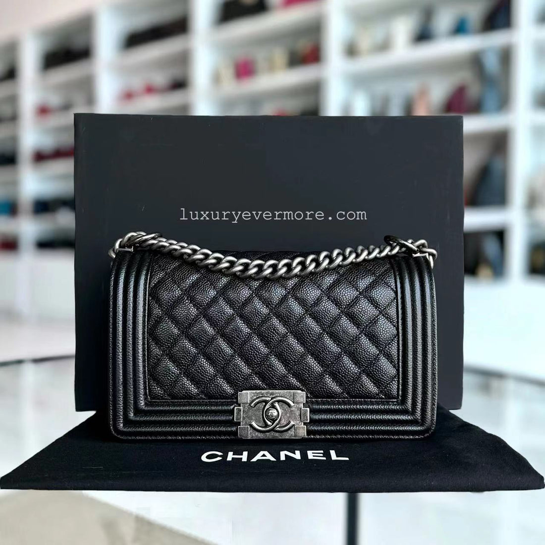 A Chanel collector's dream! The Chanel Caviar Boy Old Medium in exquisite quilted grained calfskin,...