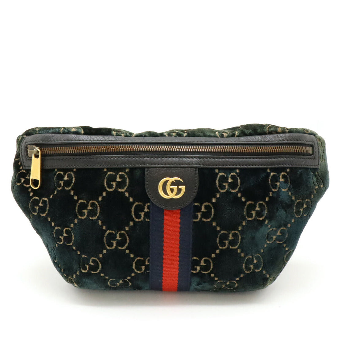 Gucci GG Velvet Shearling Line Belt Bag 574968 Leather Green