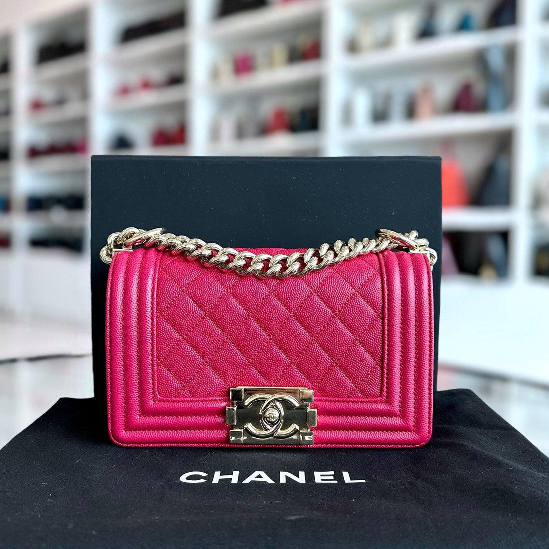 Caviar Boy Small 20CM Quilted Grained Calfskin Hot Pink Leboy Golden Hardware Series 23