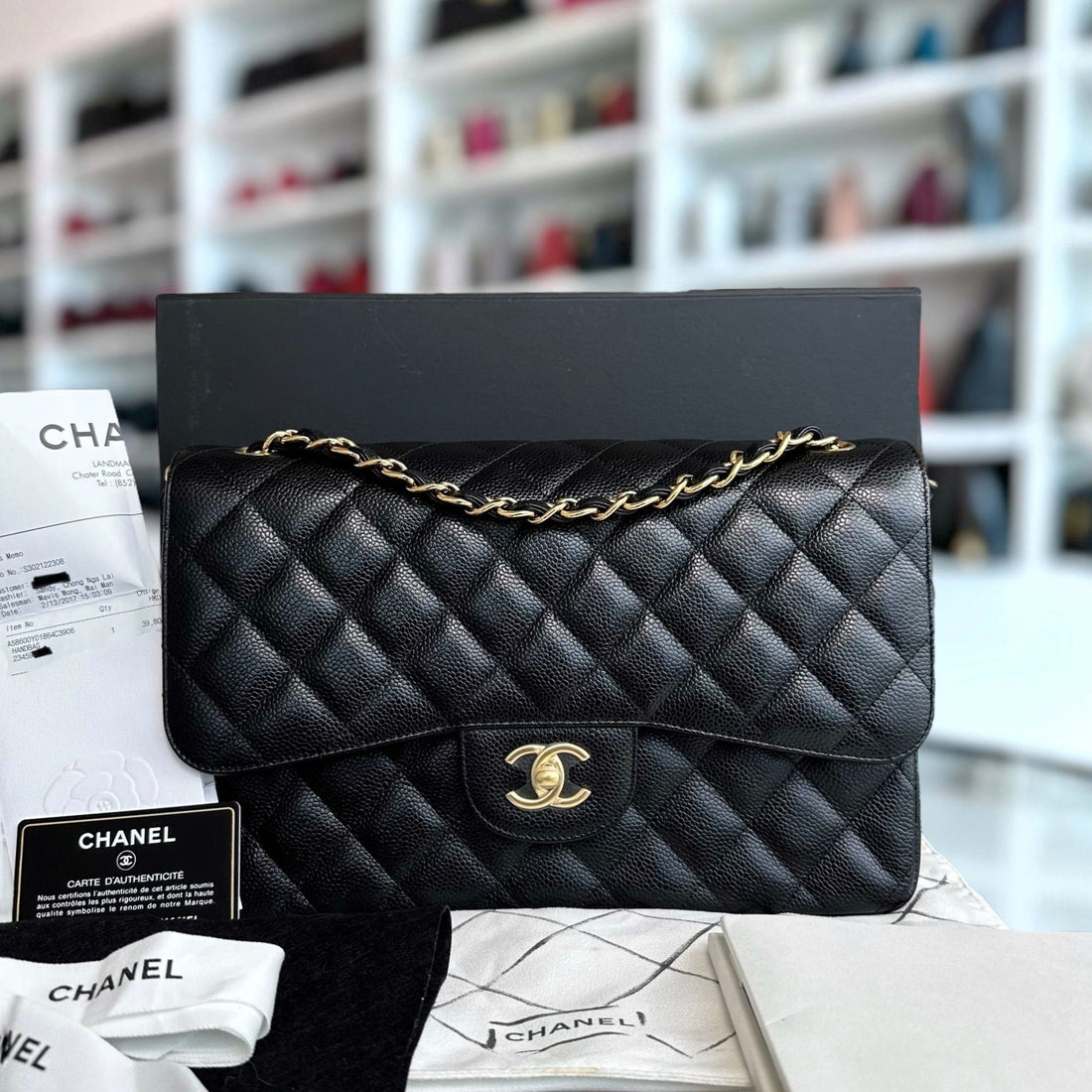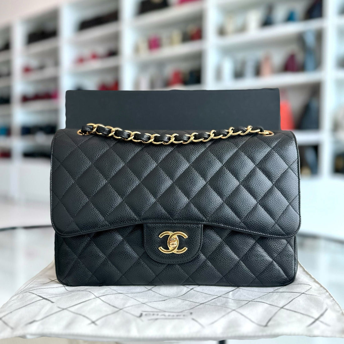 Caviar Double Flap Jumbo Classic Flap Black GHW No 23