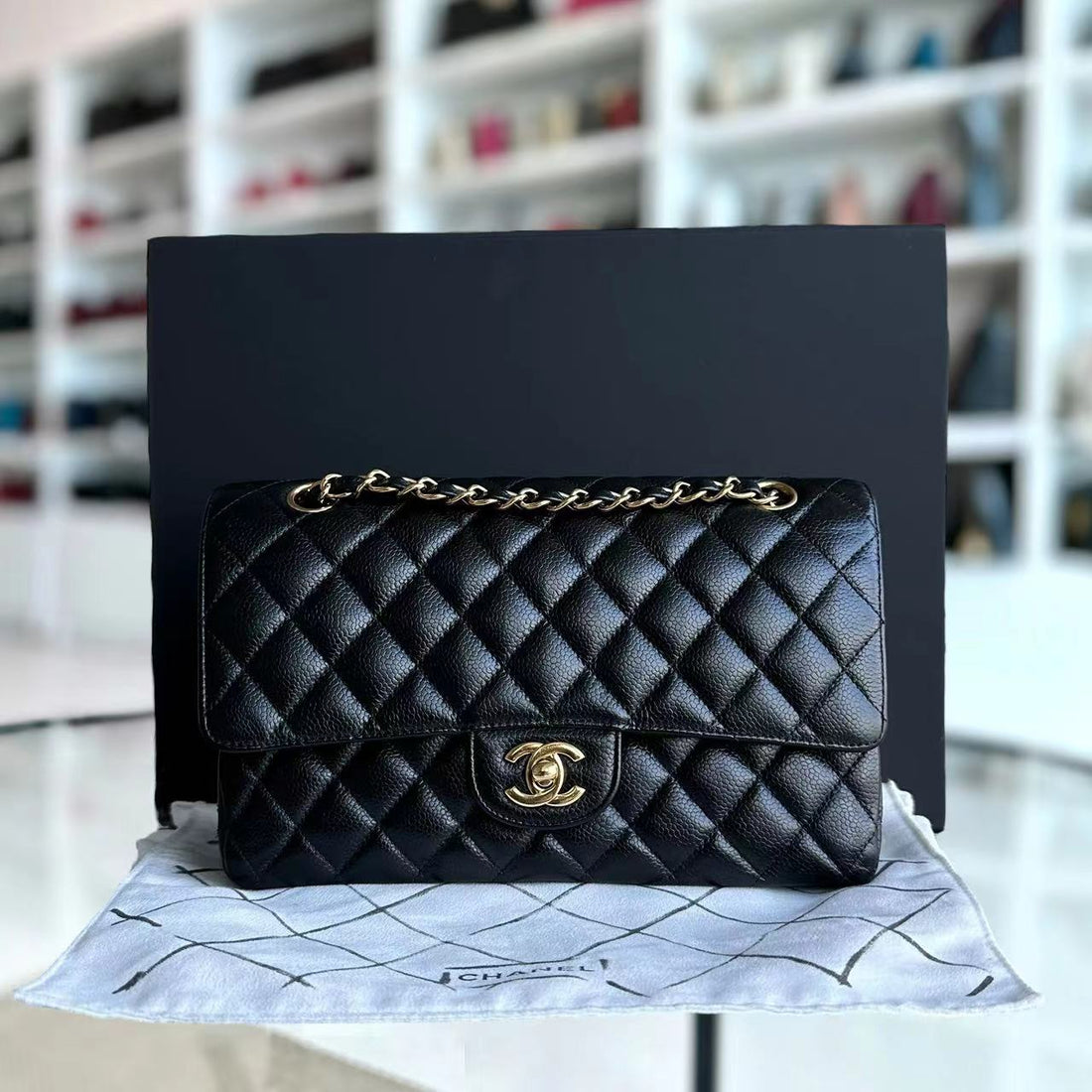 Caviar Double Flap 25CM Quilted Calfskin Black GHW No 24