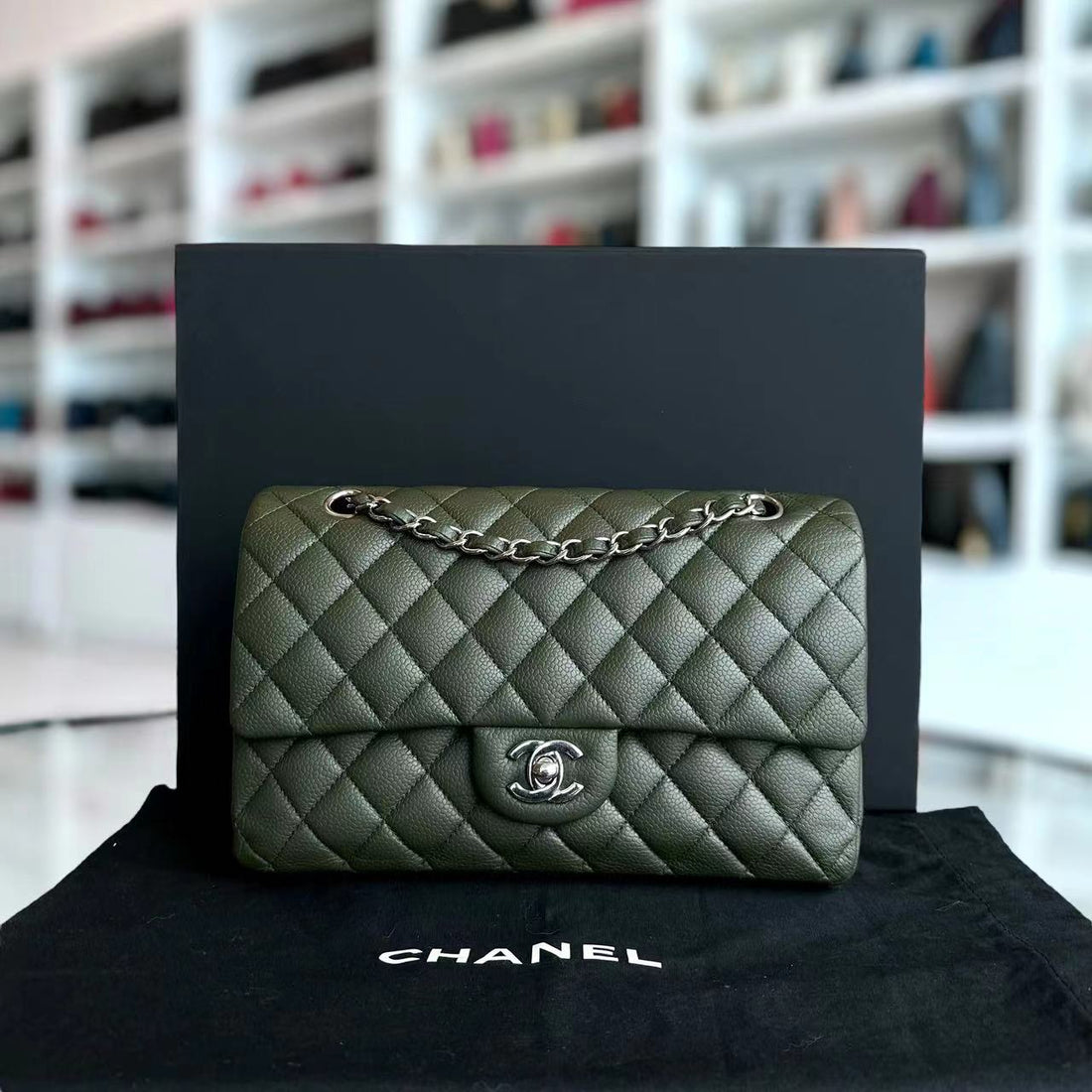 Caviar Double Flap 25CM Quilted Calfskin Green GHW No 14