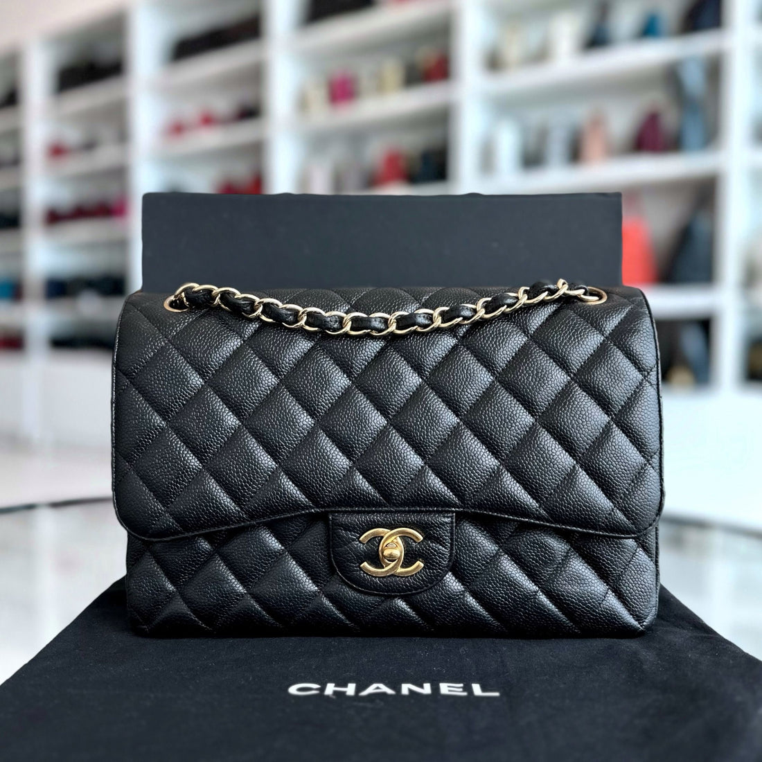 Caviar Jumbo Classic Flap Single Flap Black GHW No 12