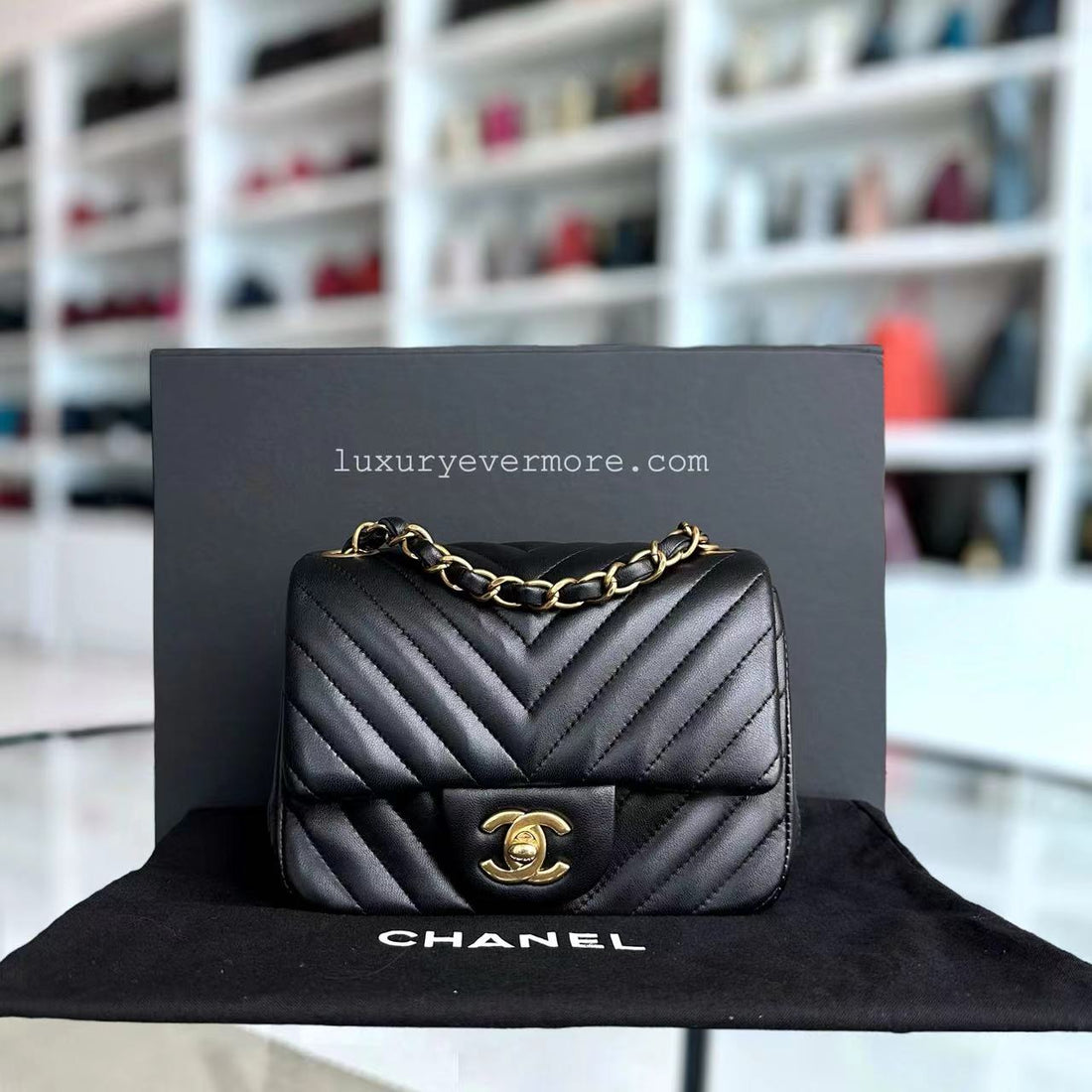 Mini Square Classic Flap Chevron Black Golden Hardware Series 21