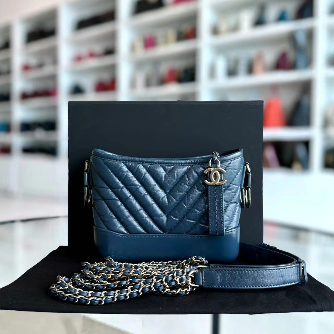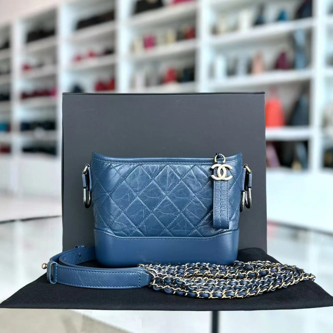 Small Gabrielle Hobo Quilted Calfskin Dark Blue Blue Two-Tone Hardware Series 24