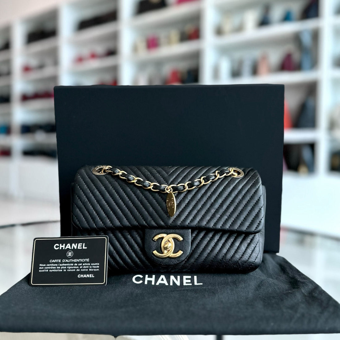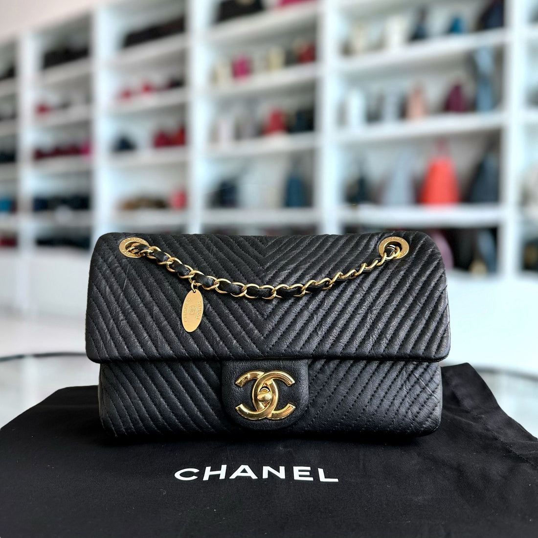 Surpique CC Herringbone Medallion small Chevron Goatskin Black GHW No 21