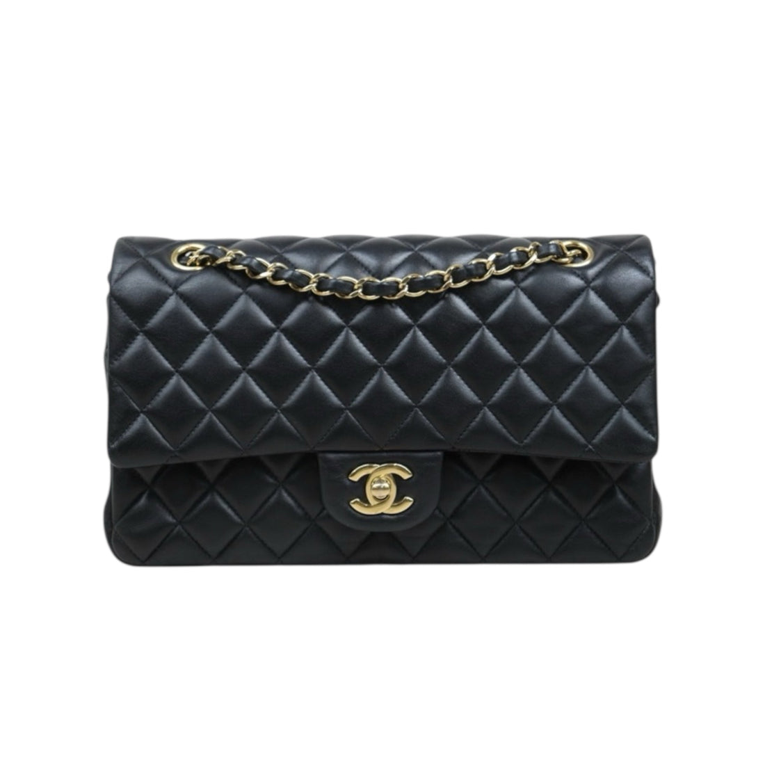 Very Good ( Rank A)? CHANEL Lamb Skin Matrasse Double Flap 25 Shoulder Bag Black Made In 2021Year?S25062503