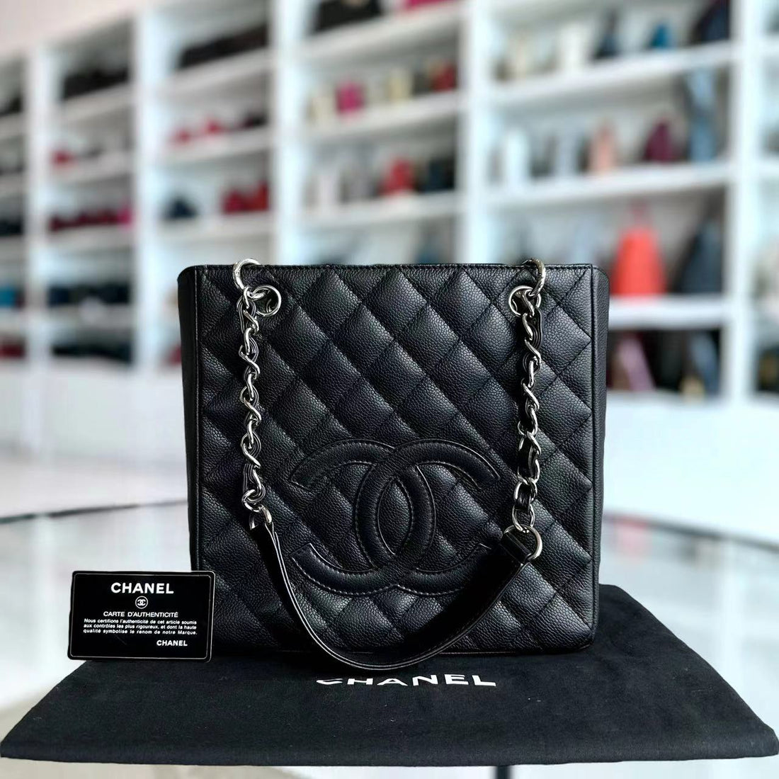 Caviar PST Petite Shopping Tote Quilted Calfskin Black Silver Hardware Series 12