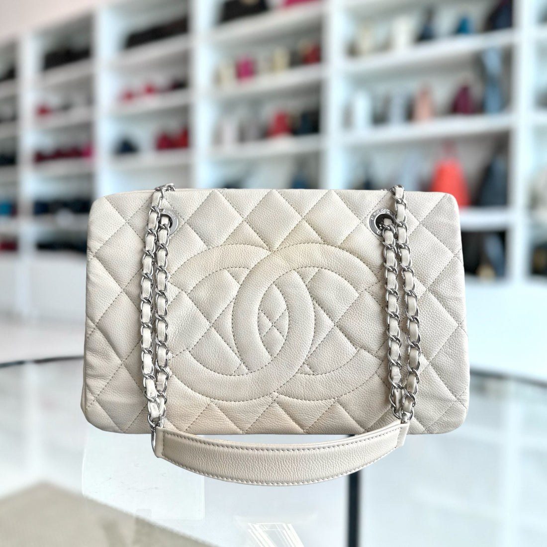 Caviar Quilted 25cm Calfskin Beige SHW No 12