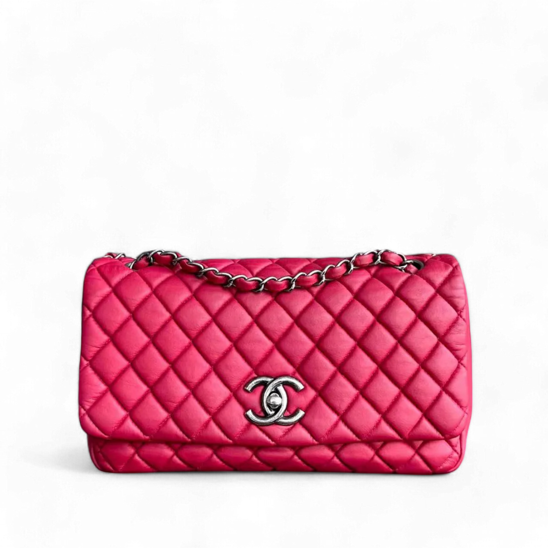 CC Puffer Bubble Seasonal Classic Flap Calfskin Red Silver Hardware Series 17