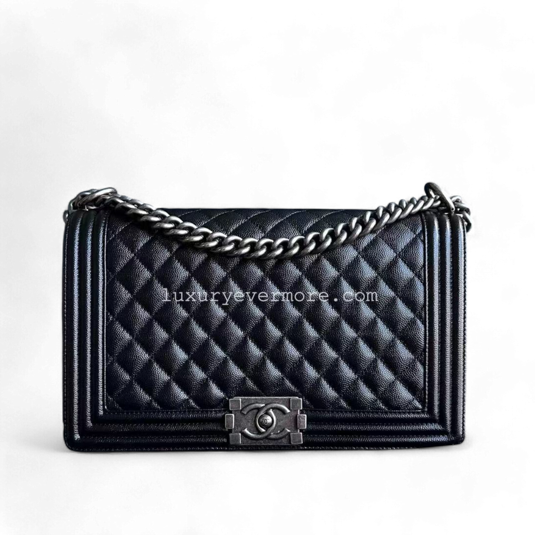Overview An absolute gem! This Chanel Caviar New Medium Boy in Quilted Grained Calfskin with...
