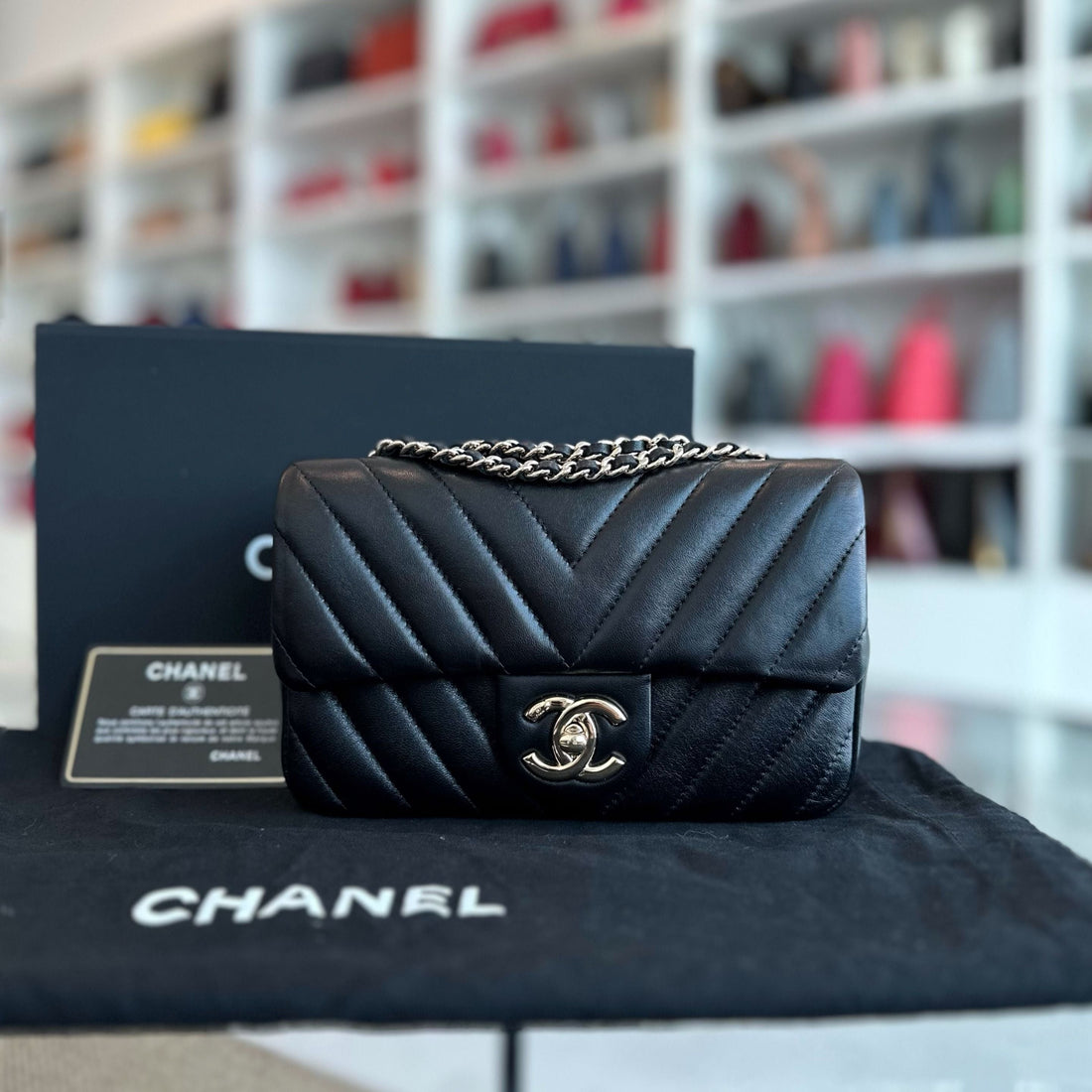 *Like New* Mini Rectangular 20CM Chevron Lambskin Black LGHW
